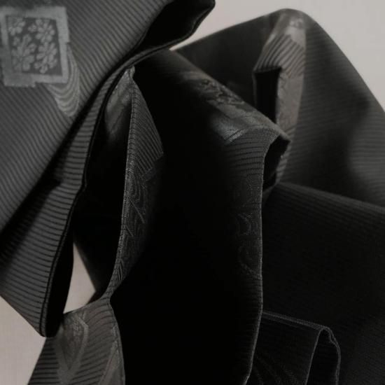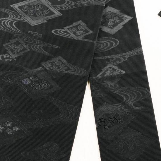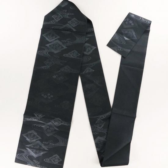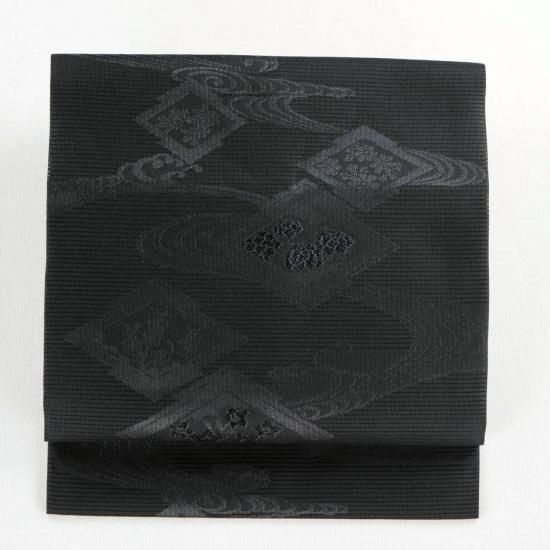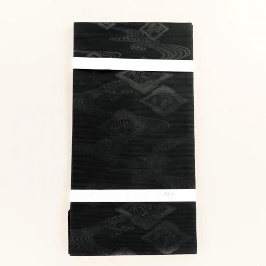 夏の黒帯。紗。絽。松皮菱に流水の地紋入り。